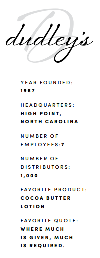But the family-owned and -operated business rallied, restructured and in 2008, Ursula found herself as President and CEO of Dudley Beauty Corp. “I had to use all of my knowledge and experience up to that point to lead the company. It was challenging and exciting at the same time.”